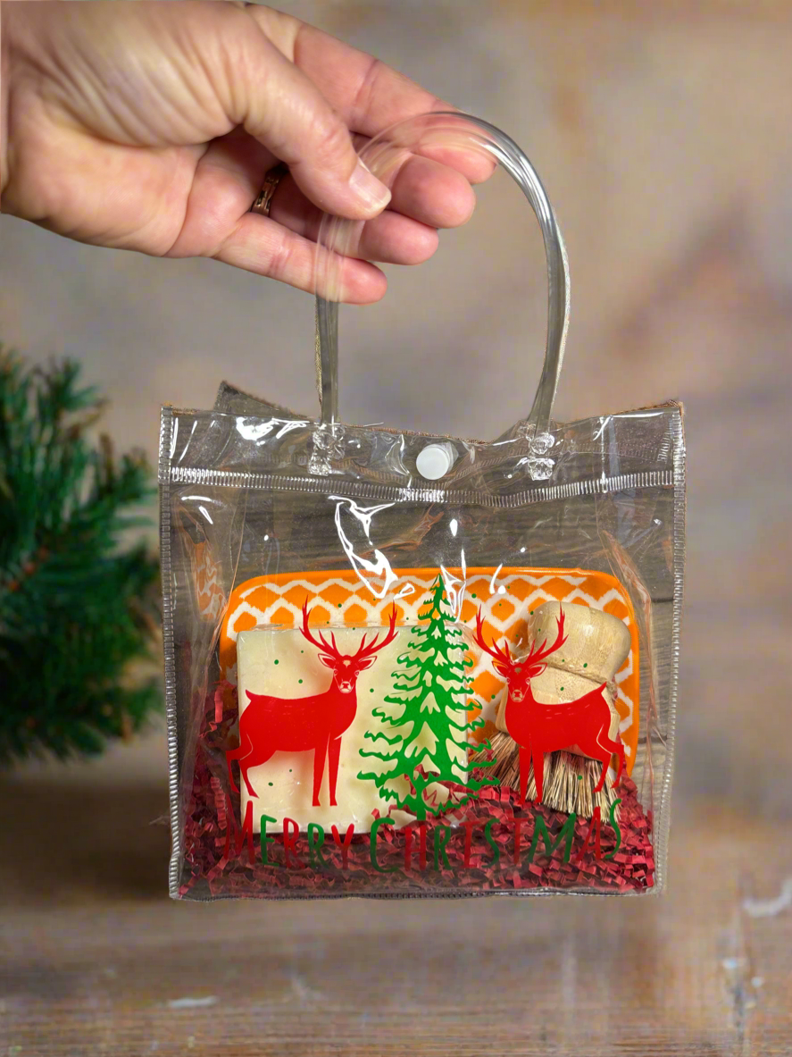 Solid Dish Soap Block Gift Set w/Tray & Bamboo Brush, Orange