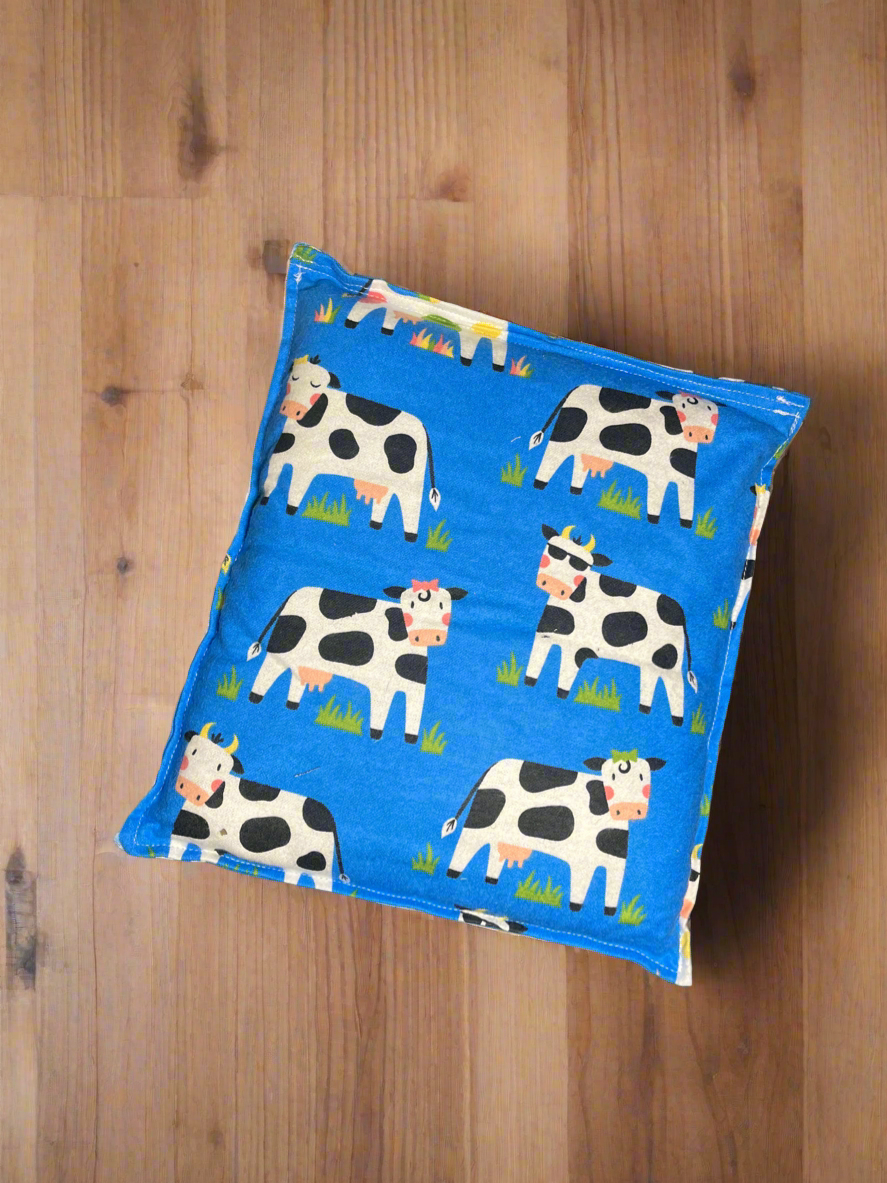 100% cotton flannel. 32 oz rice, flax seed, and lavender. Approximately 8x10.